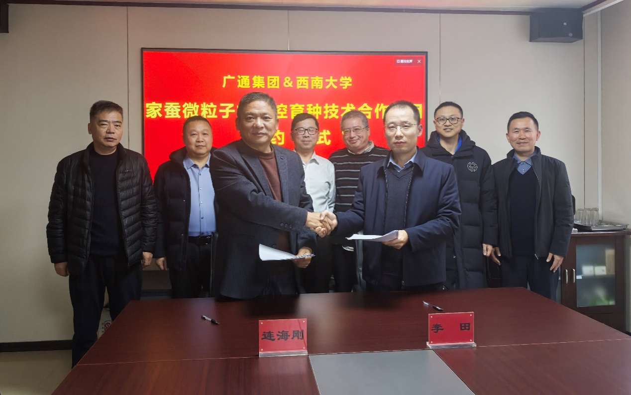 为深入推进双方战略合作,实验室还与广通集团签署了《家蚕微粒子病防控育种技术合作意向书》,共同擘划家蚕抗病种质创新蓝图。